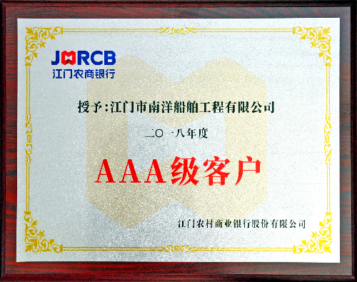 資質(zhì)榮譽(yù)您當前位置: 首頁(yè) > 關(guān)于JNS > 資質(zhì)榮譽(yù) > 江門(mén)農商銀行AAA級客戶(hù)2018年