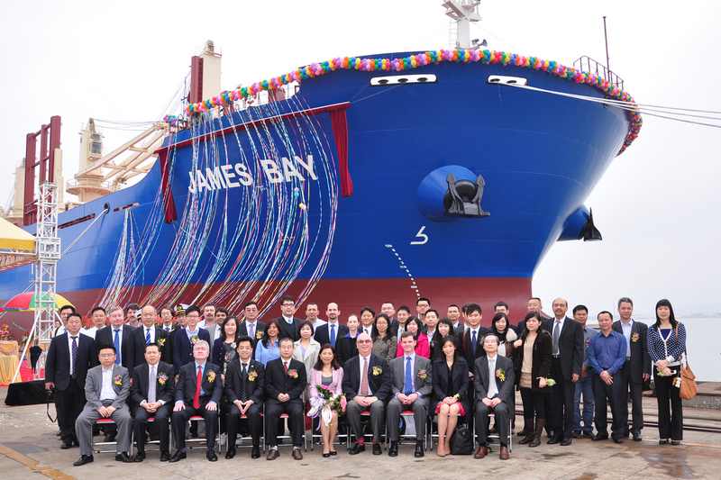 儀式上,公司副總經(jīng)理李勝先生、中航技廣州有限公司副總經(jīng)理周向勤先生、太平洋航運有限公司董事兼首席財務(wù)總監Andrew Broomhead 先生分別致辭,隨后JNS131船教母Louisa Paul 女士為這艘船命名為“JAMES BAY”號。