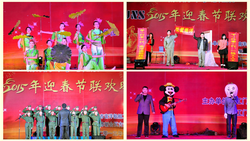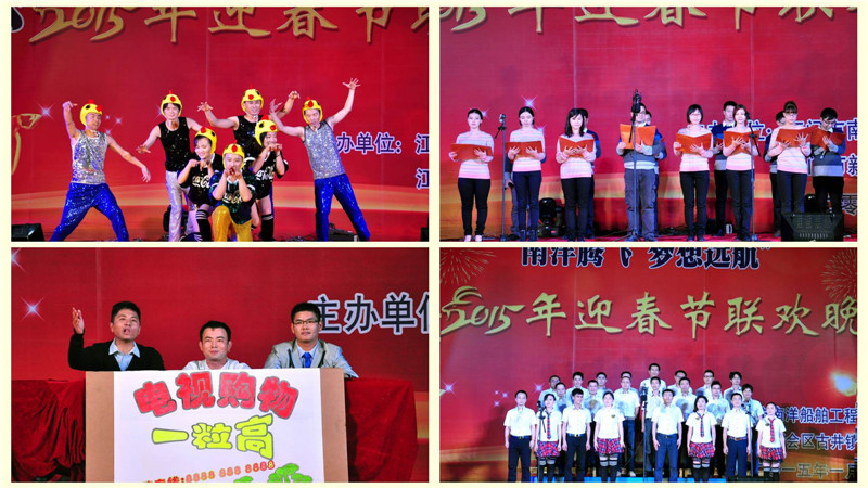 2015年1月28日晚,以“南洋騰飛 夢(mèng)想遠航”為主題的我司2015年迎春聯(lián)歡晚會(huì )在古井鎮人民會(huì )堂隆重舉行。公司全體員工、船東和船檢駐廠(chǎng)項目組成員以及勞務(wù)隊的代表們歡聚一堂,一起度過(guò)了一個(gè)難忘的夜晚。