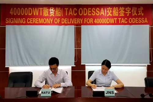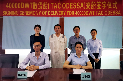 2021年5月25日,JNS179船TAC ODESSA號交接簽字,當天下午啟程遠航。同時(shí),JNS179船是JNS建造的第八十艘。