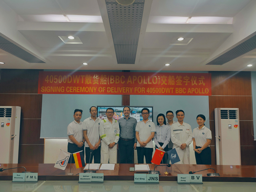 2023年11月10日,公司為德國B(niǎo)riese 船東建造的40500DWT散貨船“BBC APOLLO ”號順利交付。