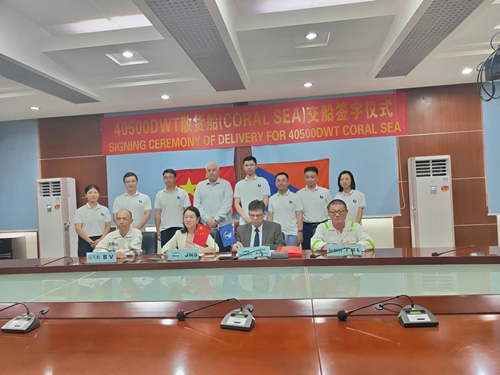 2023年11月14日,公司為瑞士Atlan Ship 船東建造的"CORAL SEA"號順利交付。